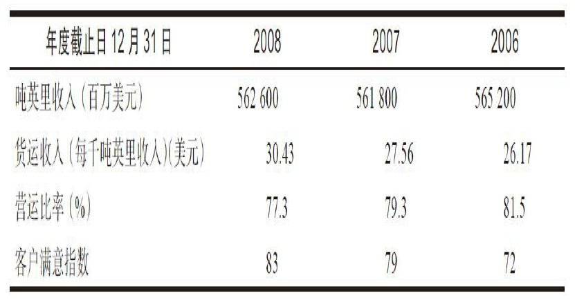 资料来源:Based on UnionPacific,“Operating/PerformanceStatistics,”2008AnnualReport,35.