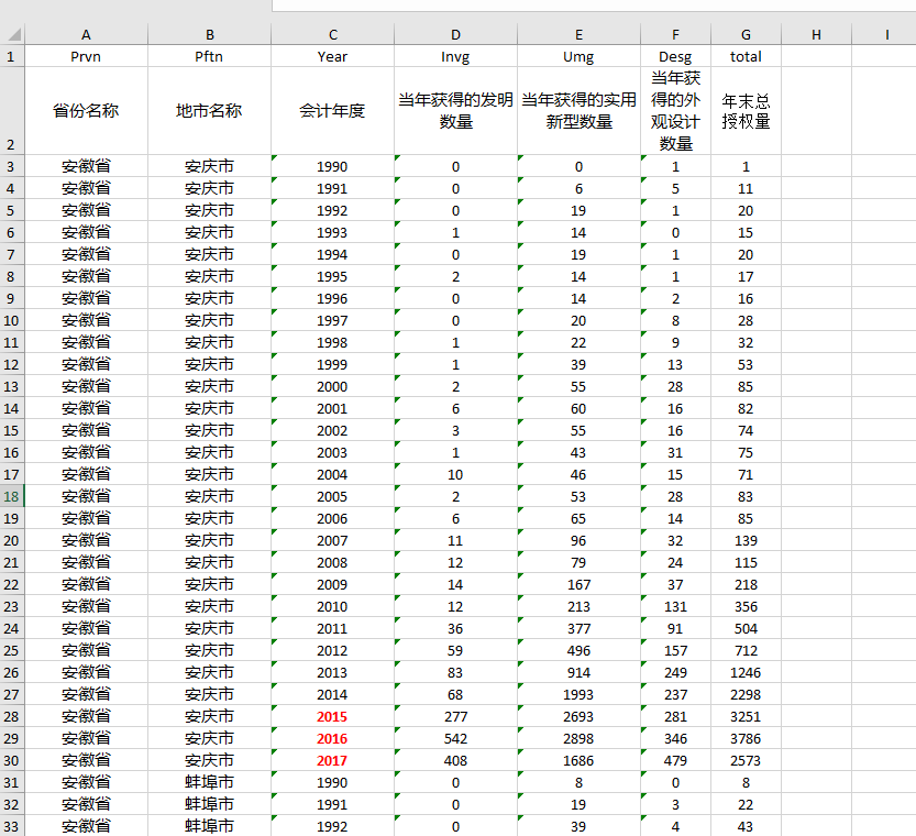 gaoyangxiaoyao 发表于 2019-5-20 08:02 作者经过收集整理,爬到中国300多个城市1991-2017年年末专利授权量数据,年末专利授权量数据可以较好的衡量 ...