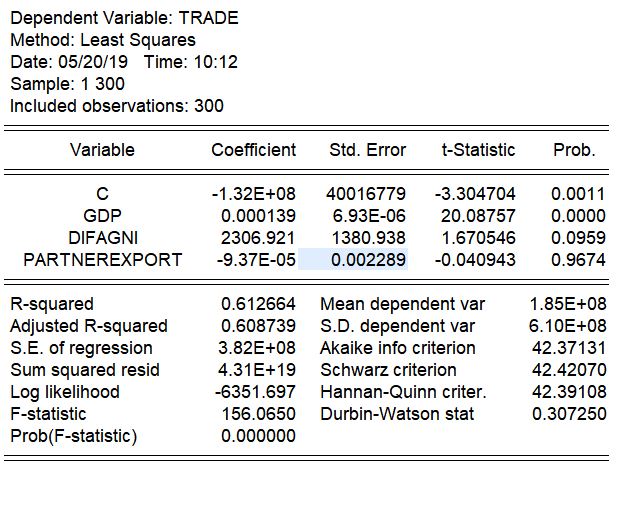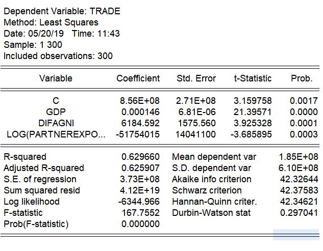 AB国X业的贸易量=B0+B1*B国的GDP+B2*AB国平均收入差额+B3*B国出口的X业产品