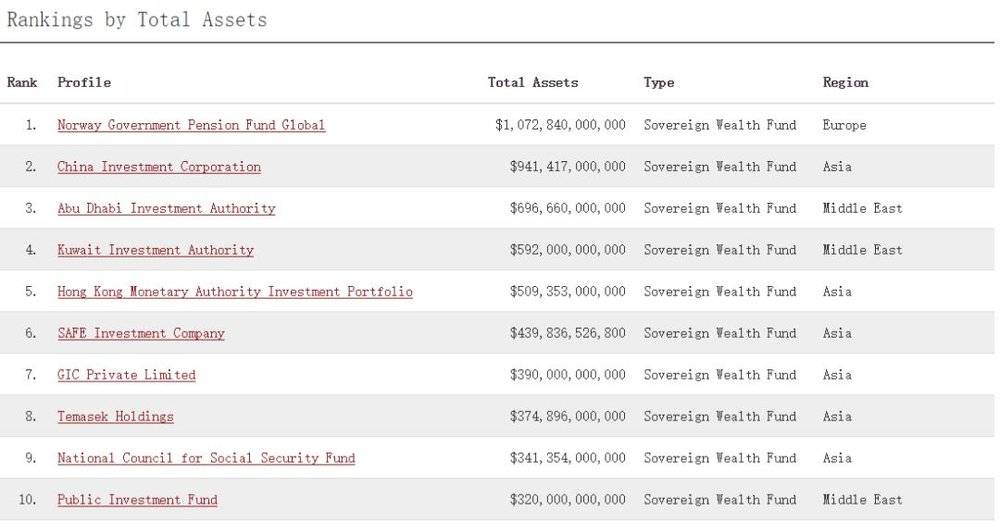 (全球前十大主权基金,图片来源:SWFI)