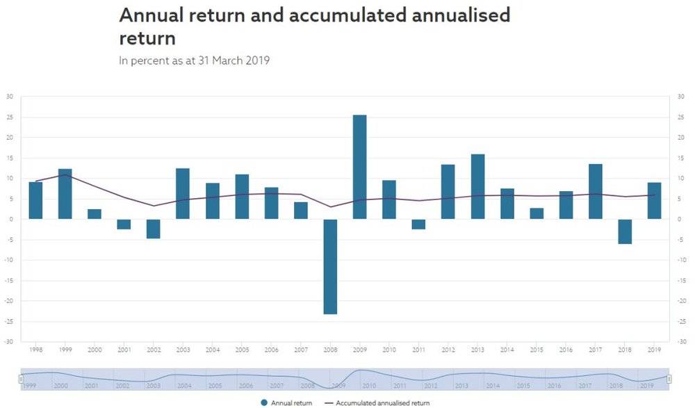 (1998年以来GPFG年度回报,来源:NBIM)