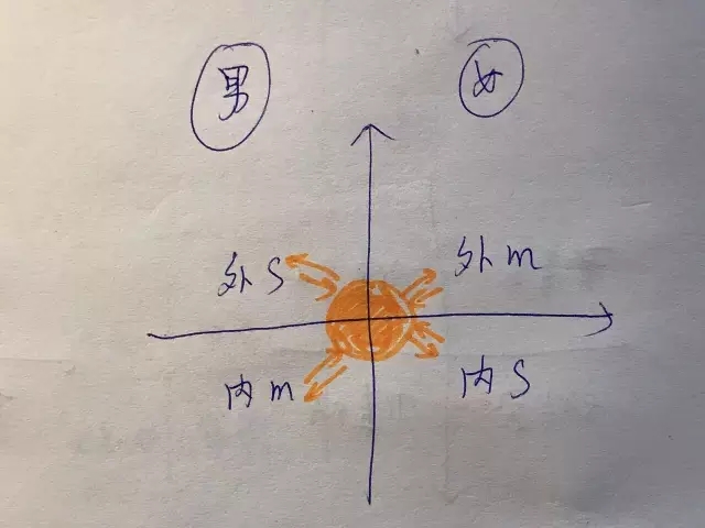 即:即使男女双方完美符合“S型M + M型S”,但在现实中,如果男方的外S,撞到了女方的内S,就会爆发战争;如果女方的外M,遇见男方的内M,就会性冷淡;