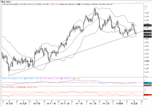 昨日黄金下跌3.1美元,最低跌至1269.3美元,收盘于1274.7美元,依然非常弱势。