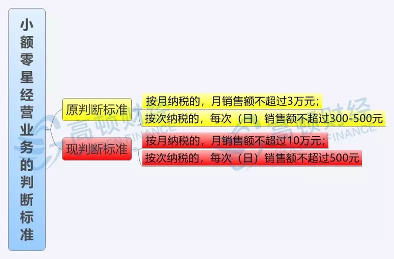 在实务中,围绕小额零星经营业务的判断标准(即个人从事增值税应税项目经营业务的免税销售额)究竟按多少金额执行,曾经一度争议很大。