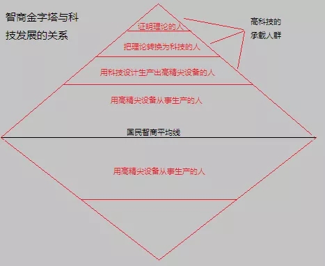 因为这个塔尖要大,除了金字塔要大外,还要金字塔本身够高。我粗略统计过,假设智商是正态分布,那么140的智商大概是1/200的概率,如果简化为等比数列,那么国民平均智商每增加5个点,意味着同样人群里,出现某级别比如150智商的比例增加一倍。