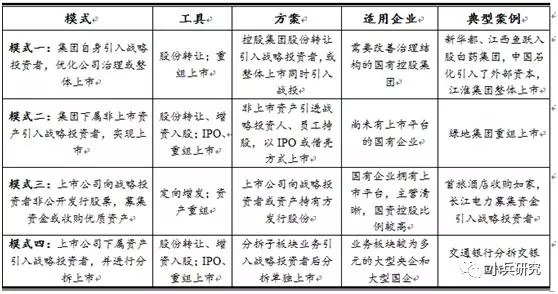 本文拟对目前市场上国企混改中几种常见借力资本市场模式进行研究。