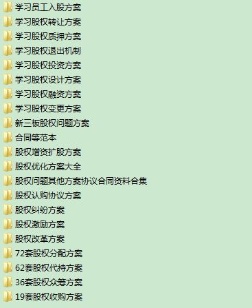 最新整理:700份最全股权方案:股权投融资方案、股权激励方案、股权分配、股权众筹、新三板、股权增资变更优化方案等