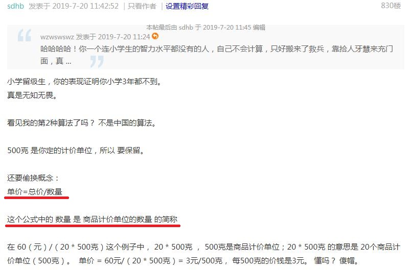 看清楚了,小学教材上单价的单位就是“元”,你却说成是“元/件”。所以,你的智力水平连小学生都不如, ...