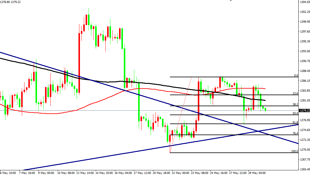 【黄金】从技术面来看,黄金昨日小幅上涨证明下方1276的支撑有效,所以我们看到此前有提醒大家,若4小时级别黄金底部在抬升,我们要小心黄金多头或已经开始启动。