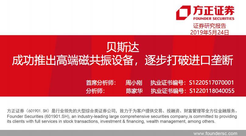 方正证券-医药生物:贝斯达,成功推出高端磁共振设备,逐步打破进口垄断-20190524-40页.rar