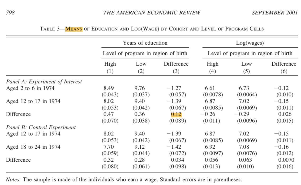 截面DID中如何处理2*2分组数据进行均值did(DUFLO 2001 AER论文)