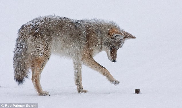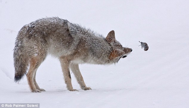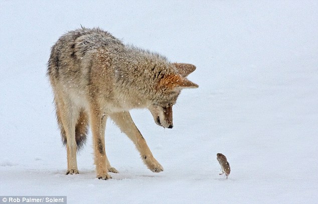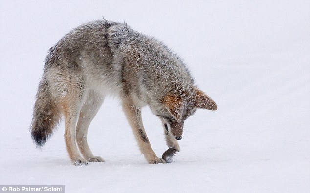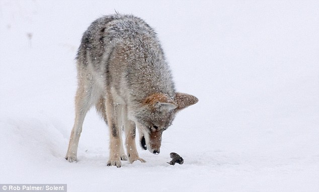 The 56-year-old said: 'The coyote was hunting for voles along the side of a snow-packed road in the park and I noticed him from the road.