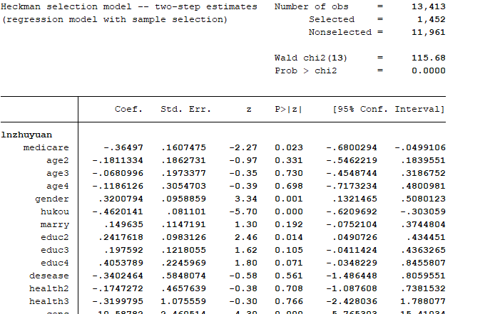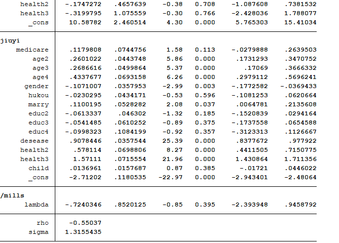 蓝色 发表于 2019-6-5 08:14 你看看manual里面对heckman命令的例子就可以看到了 你这截取了半截结果怎么判断