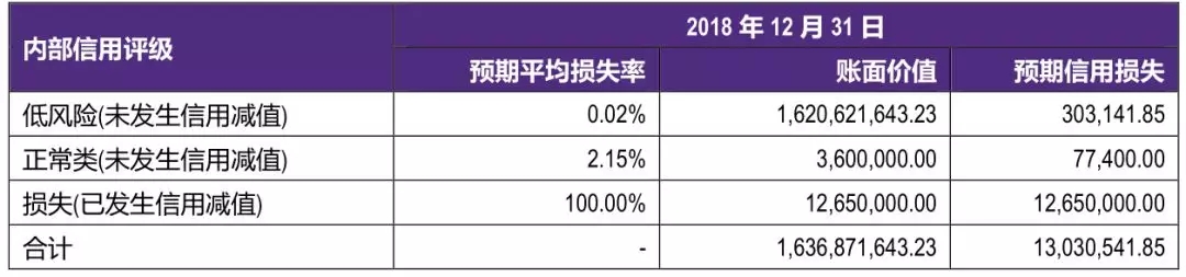 于2018年1月1日起,本集团以信用风险评级与违约损失率对照表为基础计量应收票据的预期信用损失,并计算其预期信用损失。2018年12月31日,以公允价值计量的应收票据中的预期信用损失情况如下: