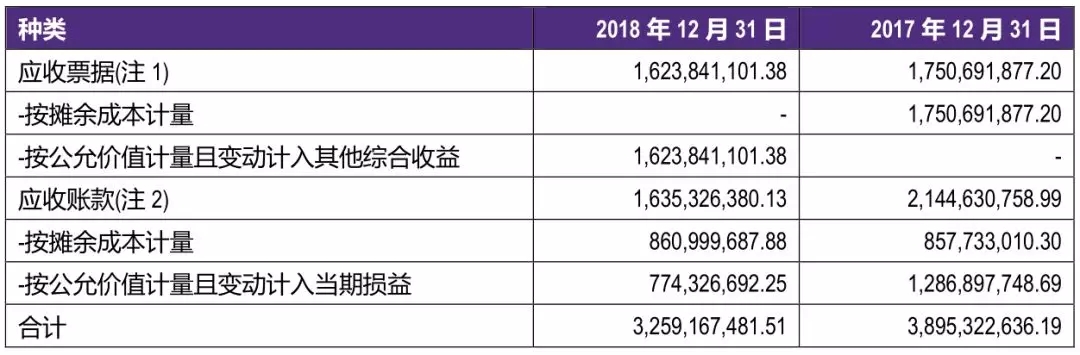 注1:本集团根据日常资金需求将部分应收票据进行贴现或背书。根据2018年1月1日生效的新金融工具准则,本集团将相关的应收票据分类为以公允价值计量且其变动计入其他综合收益的金融资产,详见附注(二)、32。