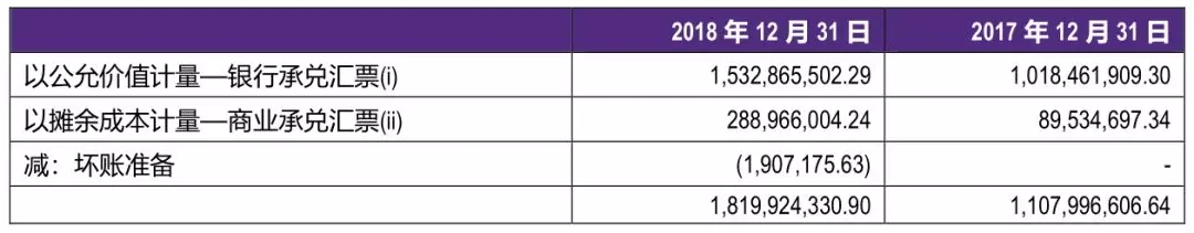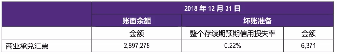 于2018 年12 月31 日,本集团无按照整个存续期预期信用损失计量坏账准备。本集团认为所持有的银行承兑汇票不存在重大的信用风险,不会因银行违约而产生重大损失。