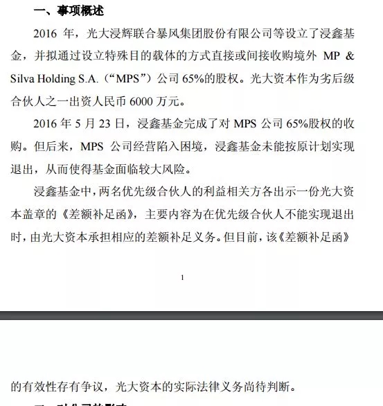 源于2016年的一场大冒进,光大跟当时的资本宠儿暴风集团合伙,搞一个海外并购基金,打算买下欧洲一家体育版权公司MPS。