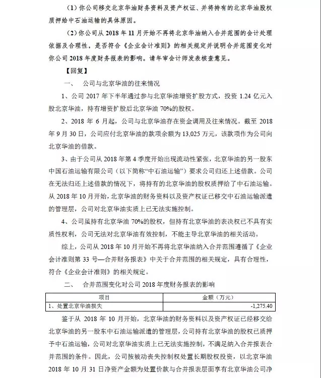 年审会计师意见:由于恺恩资源、北京华油无法提供完整的财务资料,我们的审计范围受到限制,我们无法实施满意的审计程序获取充分、适当的审计证据判断恺恩资源、北京华油的收入确认是否公允。除北京华油、恺恩资源1-9月收入调减金额外,其他收入调减事项符合公司收入确认原则。