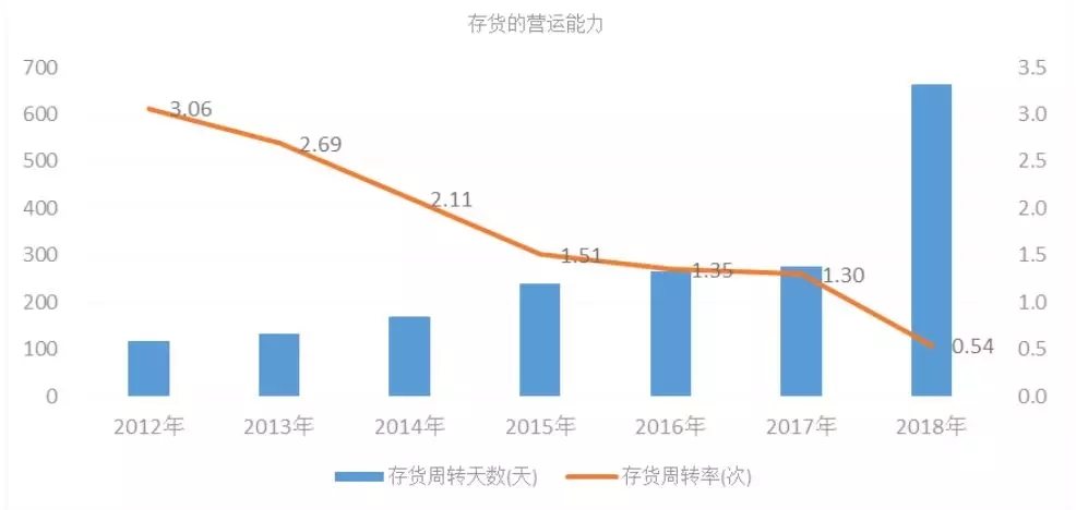 考虑到存货周转速度的话,康美存货的问题就会越发让人担忧了。从图5可以看出,2012-2017年存货的周转天数在不断提高,存货周转率一直都在下降,这也意味着要想把这些中药材卖出处所花的时间在增加。康美方面给出的解释是为了中药材贸易的需要,需要对中药材进行一些战略性储备。但是,仔细思考一下,其实缺陷非常明显,因为就算是战略性配售也不应该导致存货周转天数持续增加,这样面对价格波动的风险将增大。到了2018年,公司最新公布的存货周转率为0.54,这也意味着要处理完这批存货需要将近2年时间。中药业内有一句顺口溜“陈肉桂是宝、陈人参是草”,再好的药材在库里存放两年,考虑到有效成分会流失,恐怕没人再愿意高价争抢。