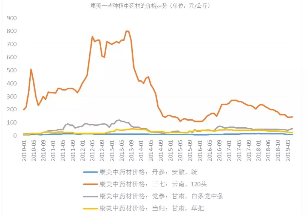 图4 康美一些种植中药材的价格走势