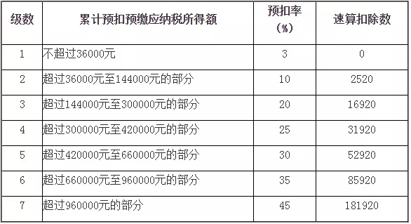 个人所得税预扣率表一