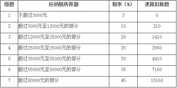 个人所得税税率表三