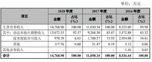 第二高是依赖单一产品。已经商业化的西达本胺成为了该公司吸金产品,2016至2018年,上市产品西达本胺为其贡献的销售收入从65.32%增长至92.57%。