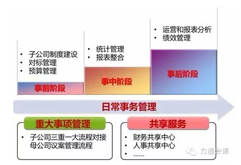 针对重大事项的管理,子公司的治理文件和管理制度已经对权限作了明确划分,因此,对于需要提交到公司治理层进行决策的重大事项,首先需要履行子公司内部审核程序,待审核通过后提交母公司归口管理部门,与母公司的议案管理制度形成无缝衔接。