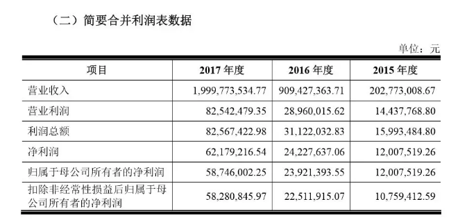 2016年营收和净利润有所下滑,2017年业绩回升,净利润终于破亿。