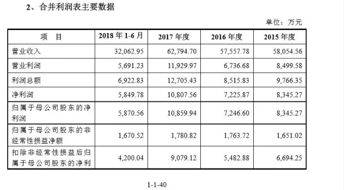 2015-2017年和2018年1-6月,柯力传感的营业收入为5.81亿元、5.76亿元、6.28亿元和6.21亿元;同期,净利润分别为0.83亿元、0.72亿元、1.08亿元和0.58亿元。