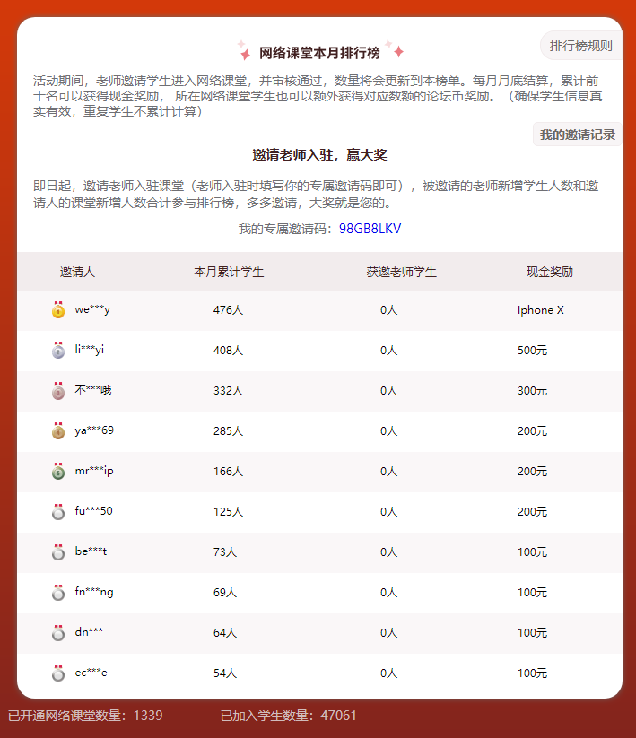一等奖:获得者是来东北财经大学统计学院的魏老师,魏老师也是经管之家多年老用户并且通过网络课堂也鼓励自己班级的学员来使用论坛的学习课程及学习资源,奖品-IphoneX手机一部。