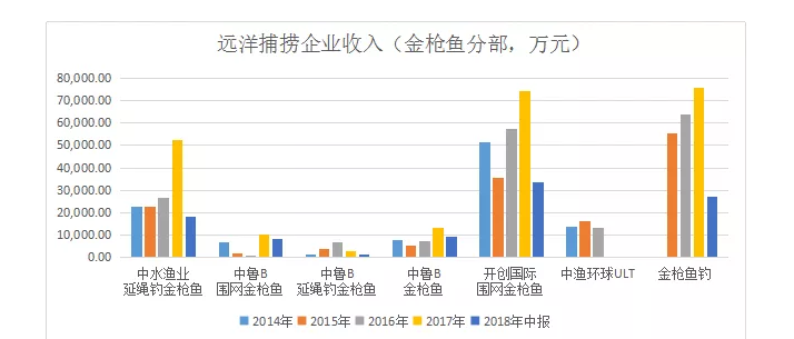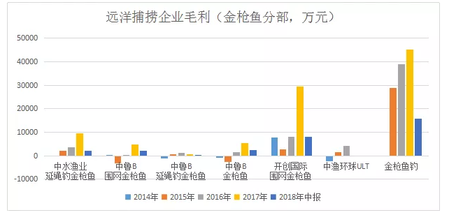 注:1、金枪鱼钓2018年数据为根据评估数推算;2、中渔环球ULT2016年数为半年报*2估算。