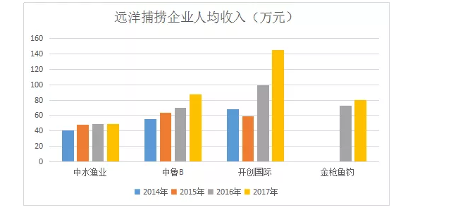 从下图可以看到,从合并报表口径来看,在远洋捕捞企业中,金枪鱼钓总收入处于平均水平;以金枪鱼捕捞销售口径来看,金枪鱼钓总收入处于领先水平。但金枪鱼钓毛利率最高,且销售费用较低,所以总的获利率是最高的,均超过第二名的一倍以上。从营业利润率、净利润率来看更是数倍于同业。