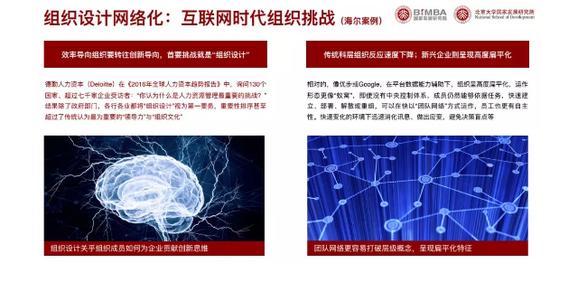 在当今社会发展中,你能看到一种新型网络化组织的出现,这种网络化组织不仅出现在海尔,也在很多互联网企业广泛存在着。在某种意义上,互联网企业更加希望自己的组织扁平化,希望组织内能产生很多小分队,小分队之间又能在组织中有序协作与运转。