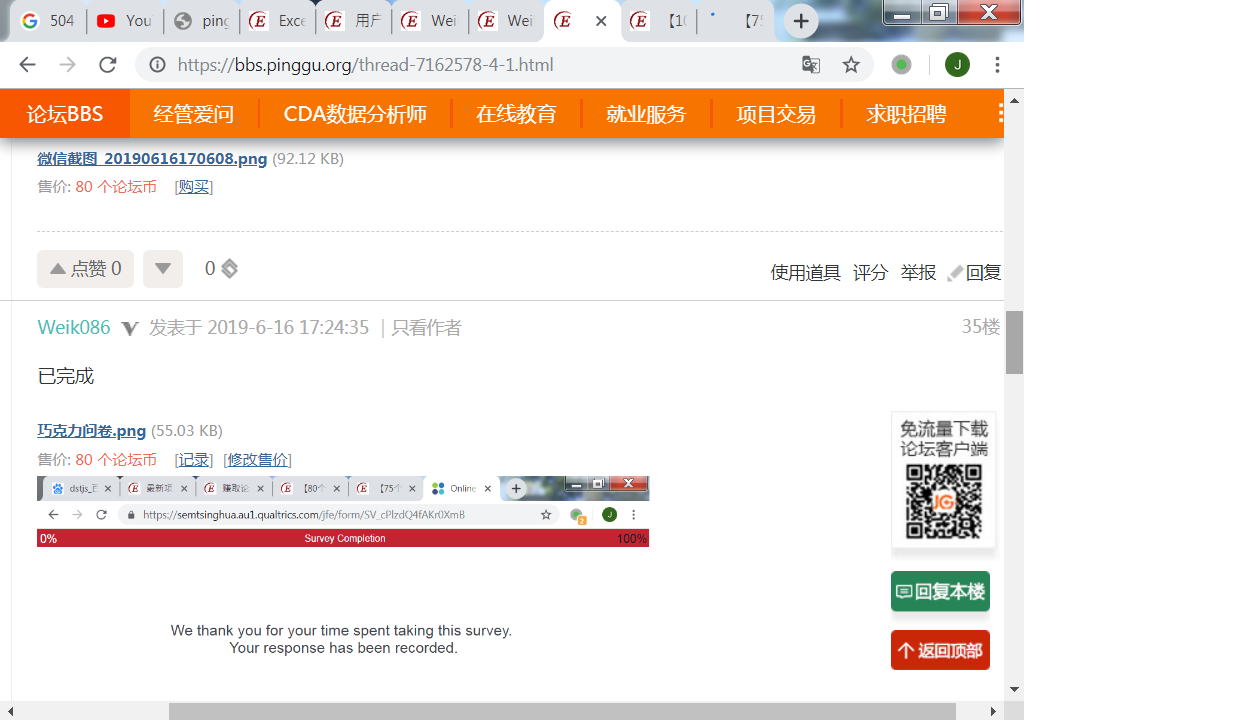 Weik086 发表于 2019-6-18 12:40 楼主,我做了你发在【其他】的75论坛币和80论坛币两份问卷调查,但都没有收到论坛币,是漏掉了吗?请抽空处 ...