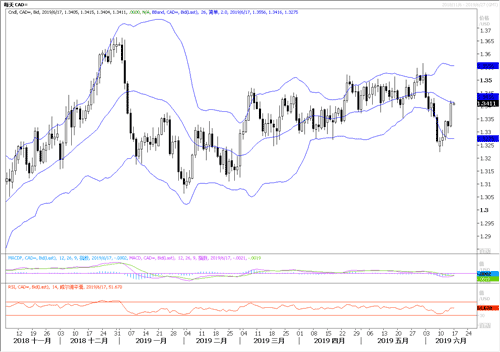由于上周五美国五月零售数据好于预期,美元得到支撑实现反弹,美元兑加元先跌后扬,盘中一度触及1.3340。过去一个月美元广泛下跌抵消了油价下跌对美元兑加元的利好影响,在最近的例会上加央行维持利率不变且暗示该央行将按兵不动。因最新数据显示加拿大之外国家的经济仍表现良好,而油价也受益于美元下跌。虽然美元兑加元目前仍维持在今年形成的上升通道中,但短线在20日均线1.3348处有上行阻力,若不破则有机会回落。上周曾建议1.3370处作为切入点空头美元兑加元,日内暂时持有,将止损设置在1.3450之上。