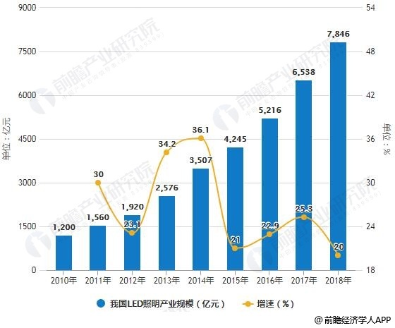 2010-2018年我国LED照明产业规模统计及增长情况预测