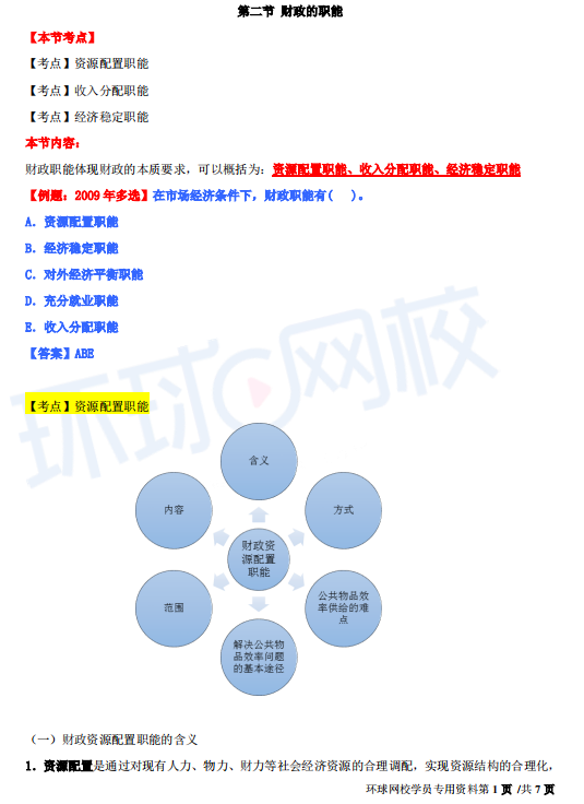 2019中级经济师-财税-精讲班【王玉娟】-03、第1章公共财政与财政职能-第2节财政的职能
