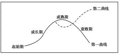 他给出的建议是:任何一条增长曲线都会滑过抛物线的顶点(增长的极限),持续增长的秘密是在第一条曲线消失之前开始一条新的S曲线。