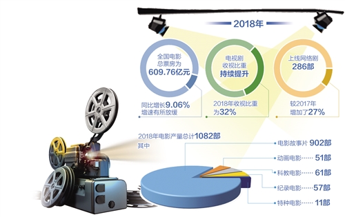 目前,我国影视产业呈现“冰火两重天”局面:一方面,市场高度集中,数量稳中有增,成绩显著。最新数据显示,2018年全国电影总票房为609.76亿元,同比增长9.06%;2018年电视剧收视比重为32%,与2017年的30.9%相比持续提升;2018年上线网络剧286部,较2017年的225部增加了27%;另一方面,资本扩张放缓,多个影视项目停摆或延后,影视融资困难,上市公司市值缩水。产生这一怪现象的原因,和相当一部分影视企业过度追求“流量”热点、片面追求商业效益现象有关。