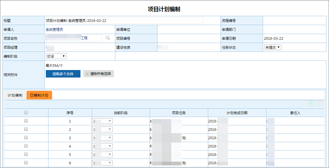 凭借着系统的灵活性,可以根据需要自自定义项目任务内容,支持多次计划编制及修正,可以查看到该阶段已经编制的计划任务。