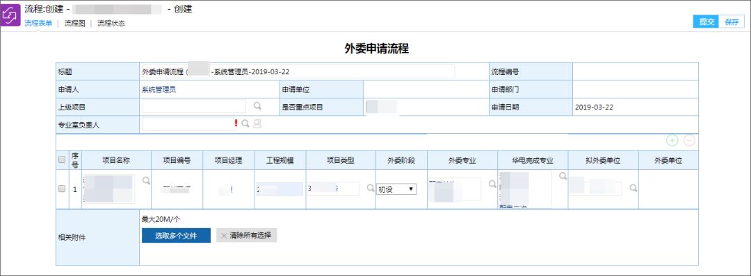 申请人发起外委项目申请流程,审批通过之后,自动生成外委记录及外委比例。
