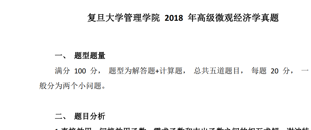 复旦大学管理学院2018年考博(高级微观经济学+管理理论综合)真题。独一份!