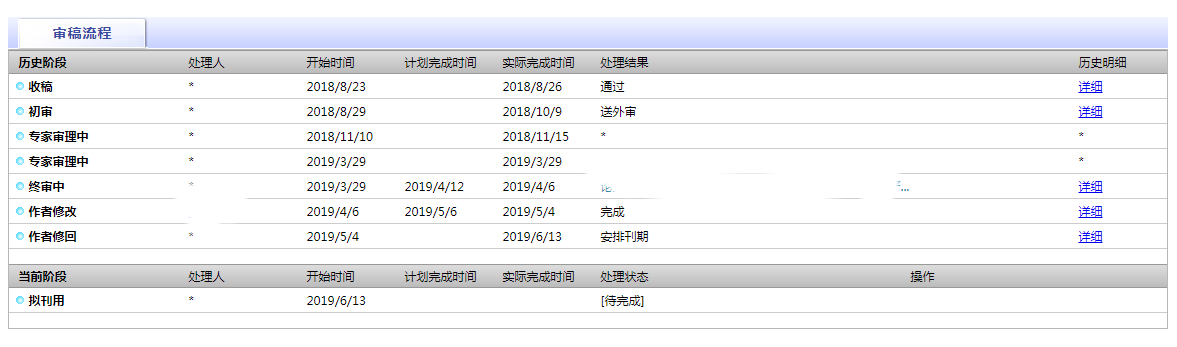 历经9个多个月的稿子终于收到了录用通知,前面搜经验的时候看到大家从投稿到录用的时间也就是2、3个月,都很快,所以我原本觉得没有希望了。经历的时间长是由于我中间经历了三审和春节放假,显示第一个专家审理的时候曾经给编辑老师打过一个电话,其实当时的心情是觉得已经退了想找编辑老师确实一下退了以便可以改投,编辑老师人很好,说两个外审专家的意见不一致需要送三审,所有又等了很久很久,送了三审后咨询了相关老师,老师说一般三审的希望不大,但又没退,所以也没啥办法只能等着,等着退了再投,又过了两个月想起来看看是不是退了结果一看还进了终审,终审没几天竟然让我修改,终审的意见是比较正面的,按着老师的意见好好修改了,修改上传了将近一个月依然没有消息,这时候又给编辑老师打了个电话,编辑老师说稿子在主编那,等2、3周是非常正常的,所以又等着一只没管,后面打开看到拟录用了。唉一路心累!不过幸好结局还不错,但是不知道什么时候能出刊。在此提醒各位伙伴,如果大家投这个刊物也不要太着急啊,可以跟编辑老师多问一下跟进一下稿子的情况,一切皆有可能的。