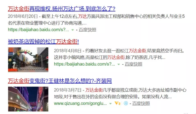而另一部分就是在购物中心外的万达金街,无一例外这些金街全部是用来销售回款的,所以,你现在就可以在百度搜一下万达金街,基本上都是下面这样的。