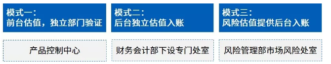 从组织架构、政策制度、工作流程等方面执行审计程序,重点关注内部控制设计和其运行的有效性。常见的问题是:在流动性较弱的市场环境下,由于中后台人员不熟悉金融产品和估值模型,可能直接采用前台人员的估值进行入账,从而导致估值独立性存在不足。