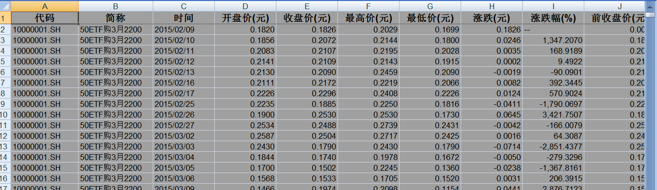 上证50ETF期权历史日线数据(从上市到2019年6月21日)excel版