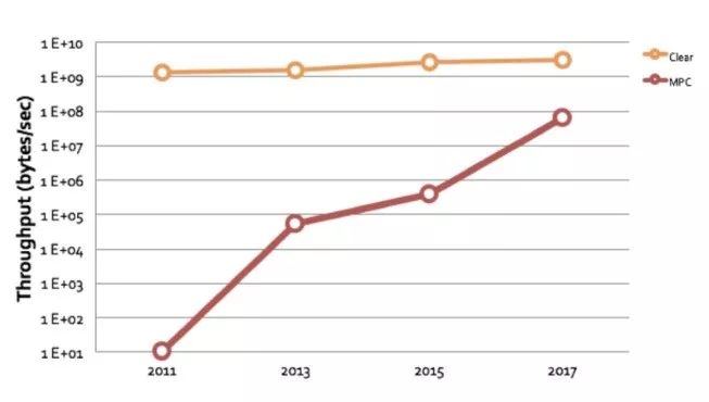 MPC的科研进展也非常迅速,可以说是目前密码学界最火热的话题。可以从上图看到,在短短几年的时间,计算速度提升了上万倍,这也是我们去年开始all in MPC的原因!