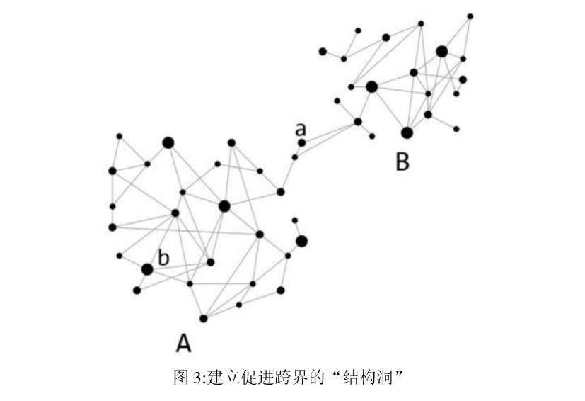 伯特教授提出了著名的“结构洞”理论,认为结构洞在信息的收集和整合过程中起到了重要的桥梁作用(Burt, 2005)。尽管海尔的“HOPE开放创新平台”与腾讯的“开源协同”的构建方式不同,然而都体现了跨界派在组织内跨越“结构洞”的桥梁功能。通过这些非结构的桥梁,组织内部以及组织与外部之间的跨界具有了通道,这不仅可以催生出许多新的“黑科技”,同样也能促进企业商业模式的不断迭代与演进。如何将互联网、大数据、人工智能等新一代科技与传统产业相融合,是目前众多企业面临的现实问题,跨界融合、知识授粉无疑是破解这一问题的重要渠道。在公司内部建立公共的技术平台、实施工作岗位轮换制度、设立专门的“技术守门人”、培养“跨界人才”等都可以作为企业进行跨界融合的具体举措。
