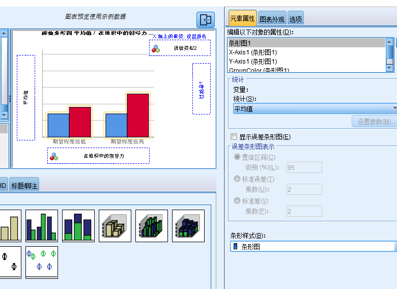 问卷调查后,这个数据是平均值的对比图。但是我用SPSS做的时候,用图表,发现一是没法形成平均值(无法确定,计数就可以确定生成数据),二是没法添加多个变量,如下图: